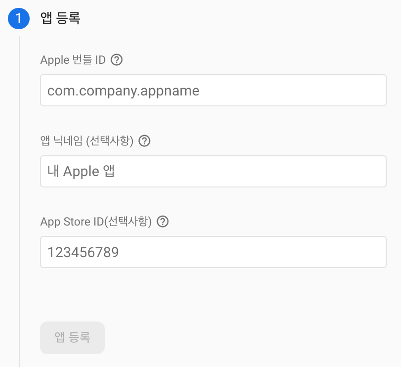 1. 앱 등록 - Bundel Identifier와 동일하게 Apple 번들 ID 설정을 합니다