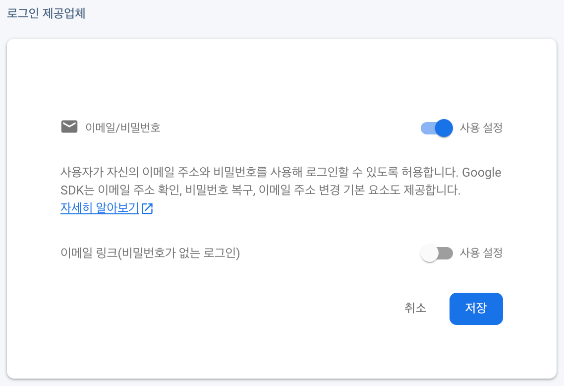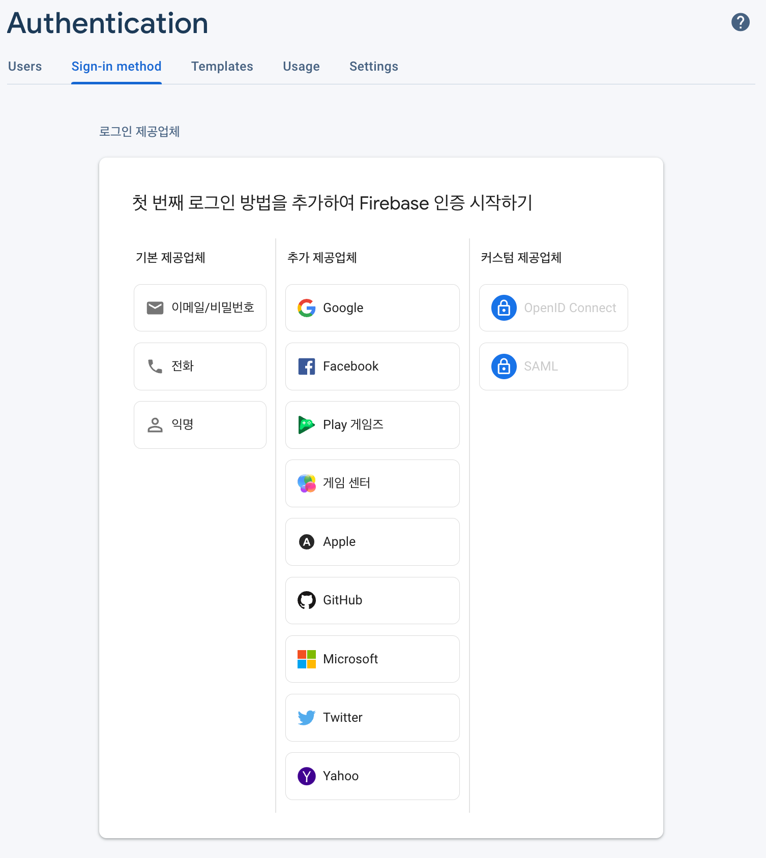 인증으로 들어가 원하는 로그인 방식 선택 (사용 설정 체크)