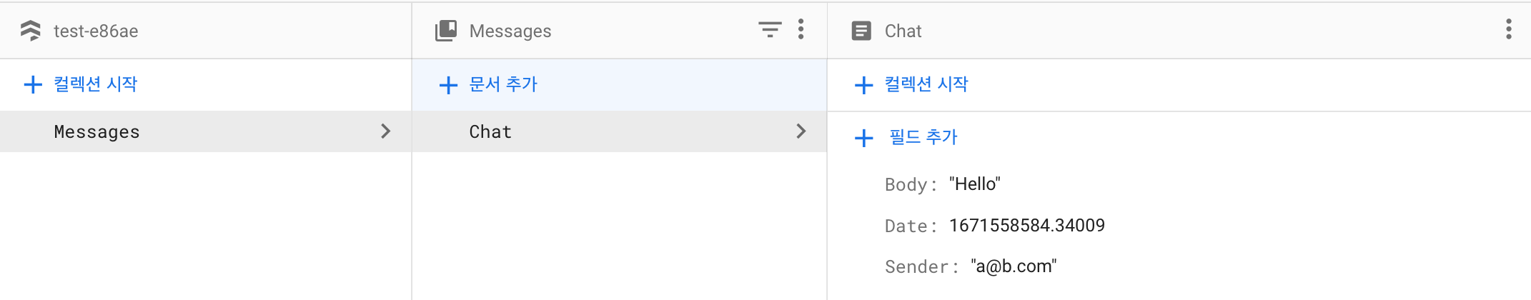- addDocument에서 저장할 데이터를 딕셔너리 형식으로 저장 [이름 : 저장할 값]