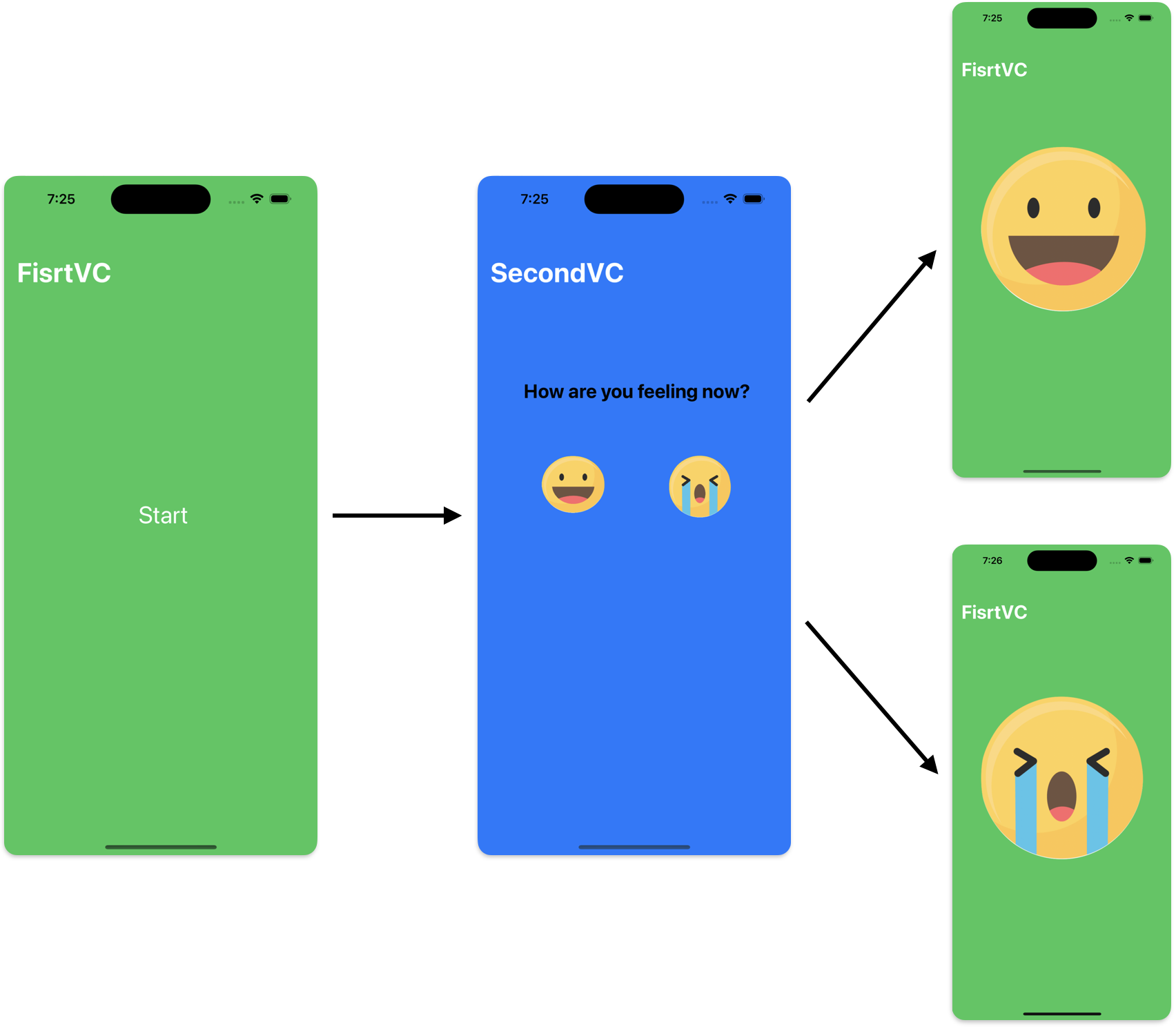이것 때문에 FirstVC에서 데이터 "happy"를 갖고 작업을 정의할 수 있는 거죠.