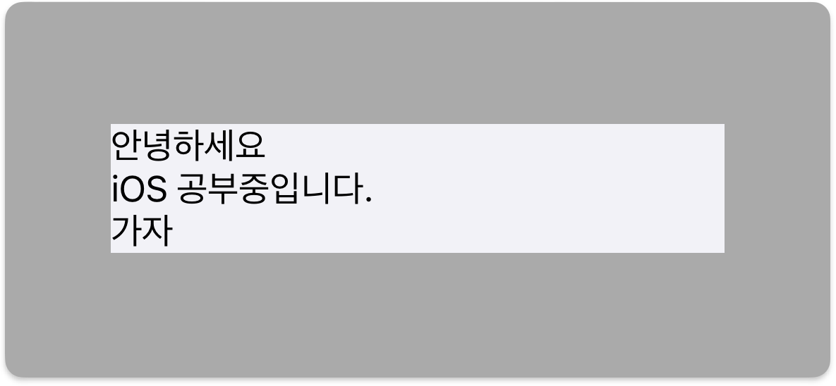label.text = "안녕하세요" + "\n" + "저는 현재 iOS 공부중입니다." + "\n" + "가자"